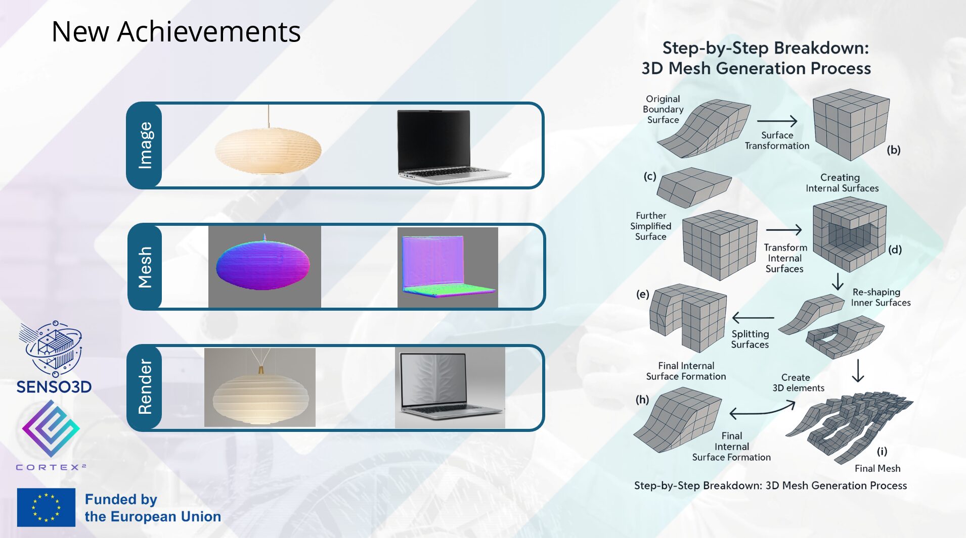 The project envisions creating detailed and accurate 3D models for XR applications, focusing on areas such as elder care, language learning, and interactive education. By converting 2D images into immersive 3D environments, SENSO3D enhances visualisation and interaction, offering substantial benefits to users, including those with special needs.